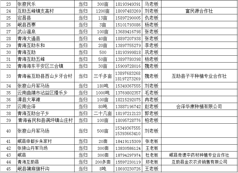陇萃源中药材信息平台(www.longcuiyuan.com)及时为广大中药材种植户、经营户、加工户及制药企业提供优质服务,现将陇萃源信息平台所登记第一手鲜货及种苗供应信息发布至平台,便于种植公司、种植合作社、种植户及时与鲜货需求加工户、经营户、制药企业及时对接。