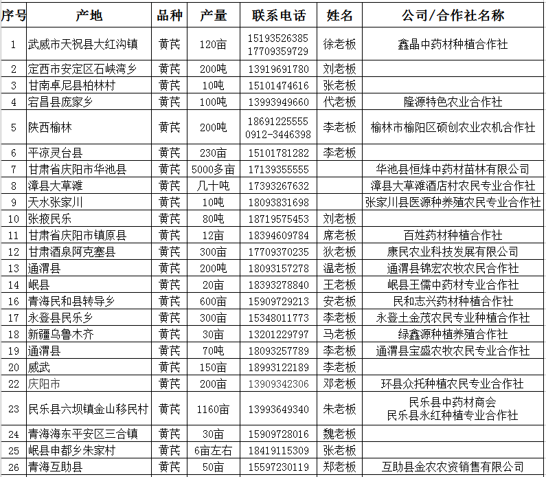 二、黄芪鲜货供应信息