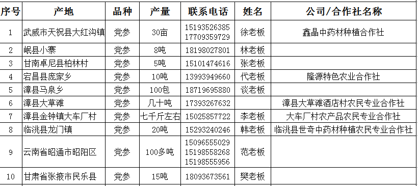 三、党参鲜货供应信息