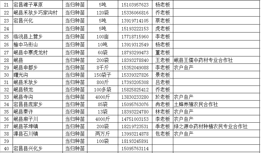 一、当归、黄芪、党参及其他种苗供应信息