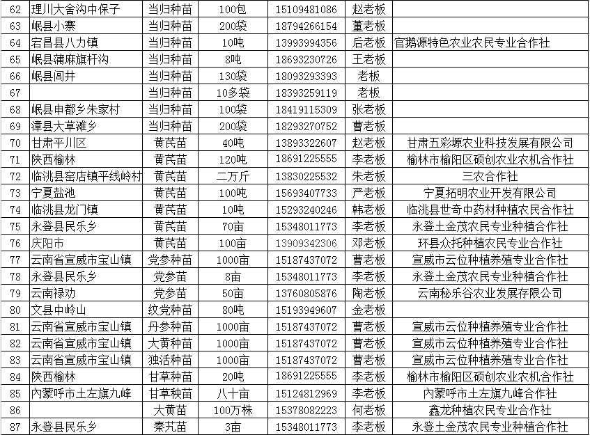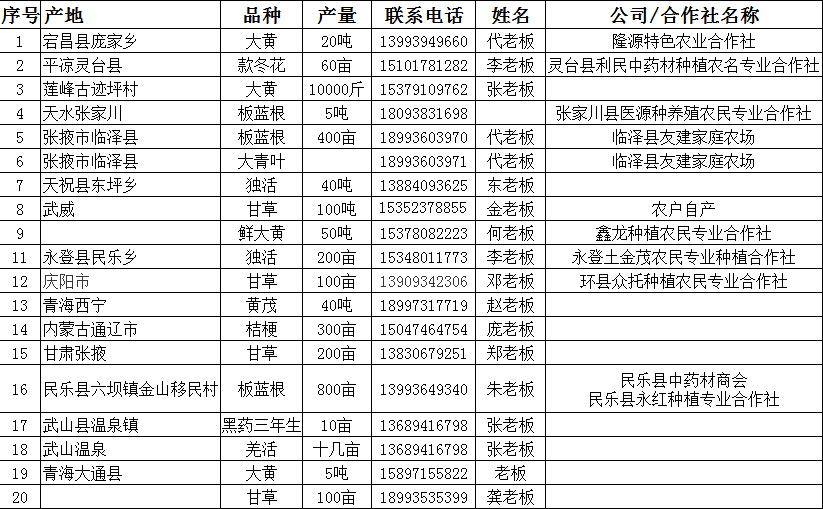 中药材种苗及鲜货采挖对接信息
