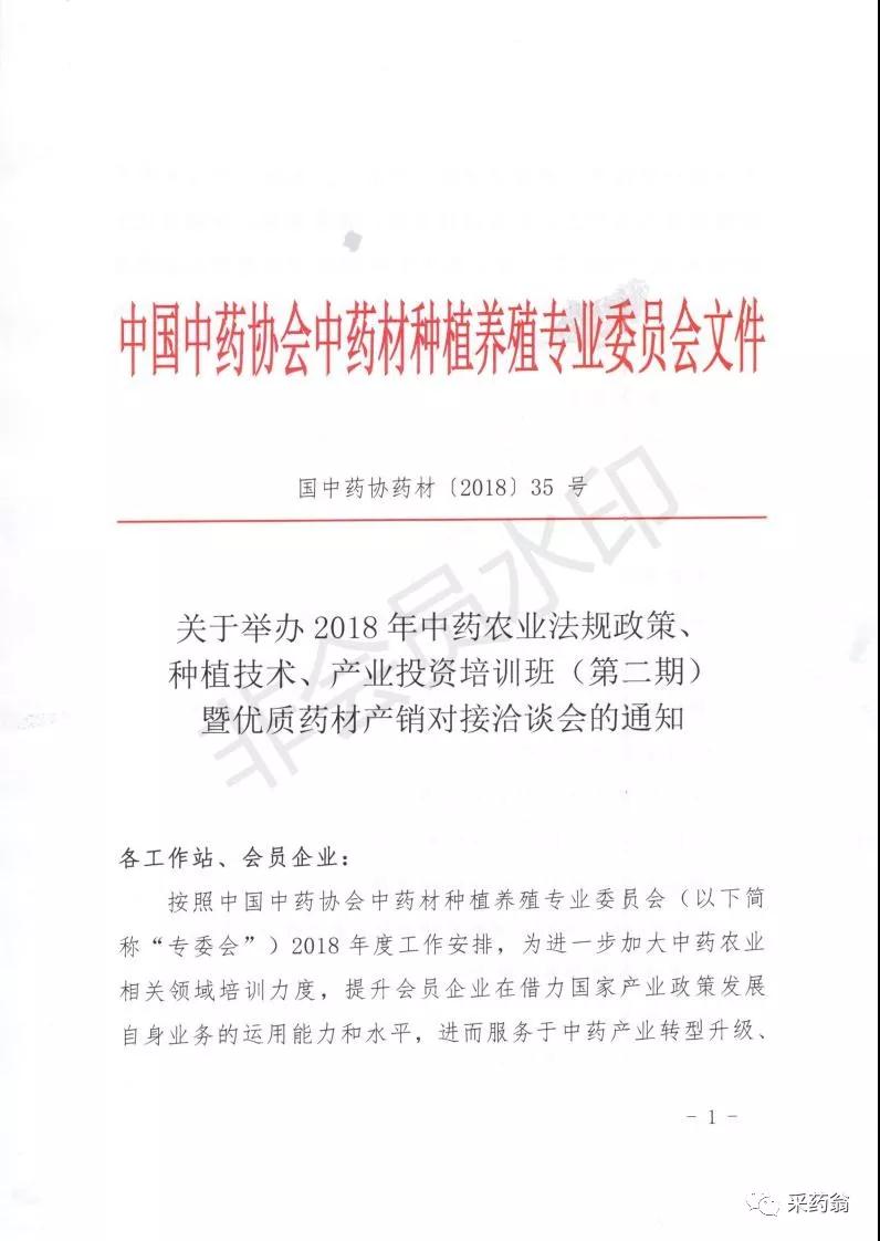 2018年中药农业法规政策、种植技术、产业投资培训班(第二期)暨优质药材产销对接洽谈会