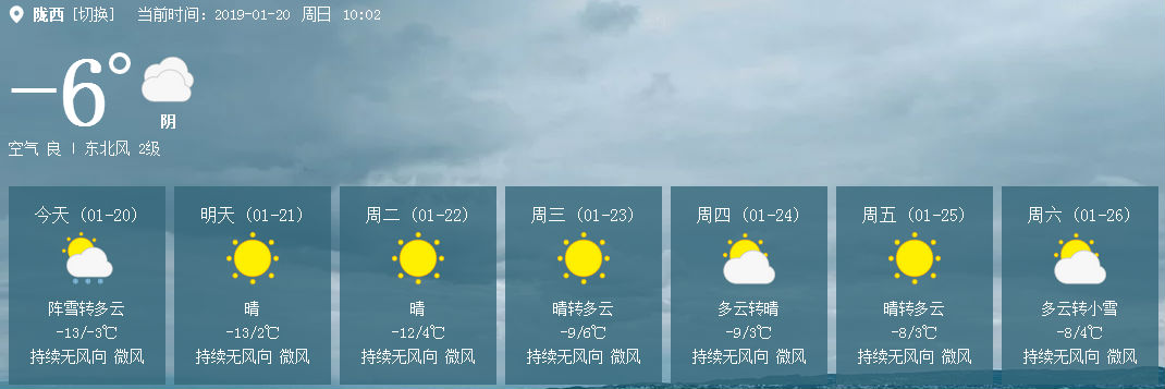 2019年1月20日-1月26日陇西天气情况: