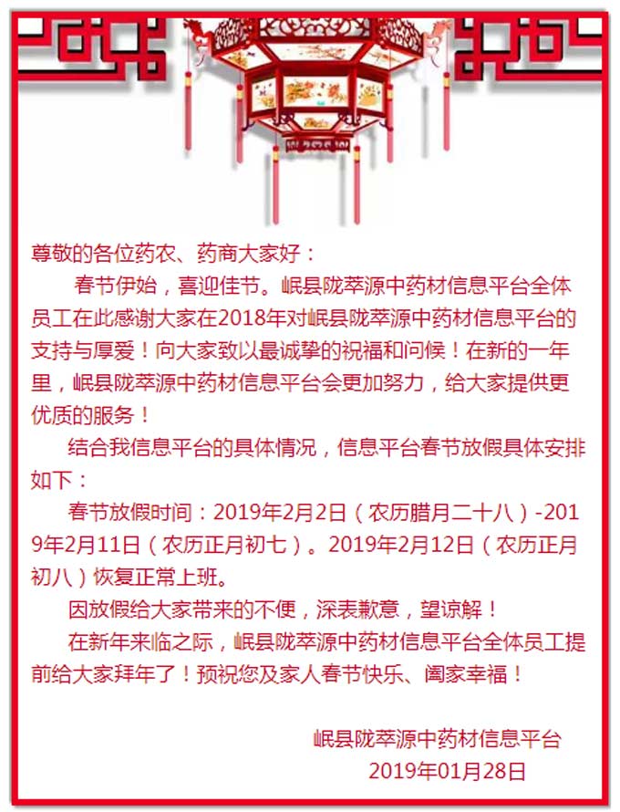 陇萃源-春节放假通知