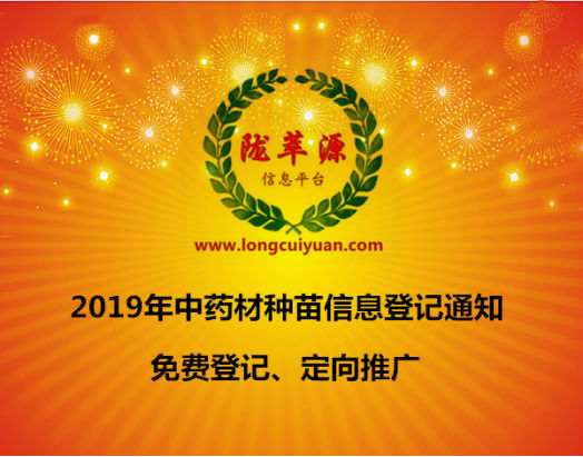 2019年春耕即将展开,陇萃源中药材信息平台(www.longcuiyuan.com)及时为广大中药材种植户、种植公司、种植合作社、种植药商、药农提供优质服务,大家可以联系陇萃源中药材信息平台运营中心登记所出售的种苗信息,陇萃源信息平台将为大家提供精准推广,将你的第一手货源信息推送到有需求的客户手中,欢迎大家前来登记。