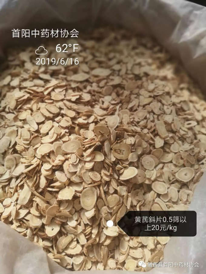 黄芪斜片0.5筛以上成交价格20元/kg