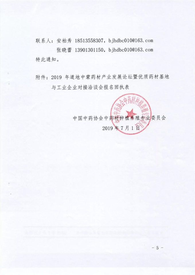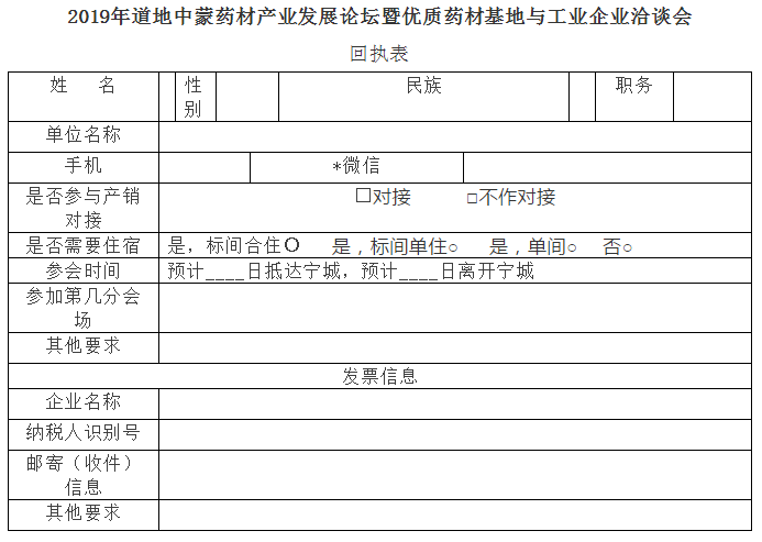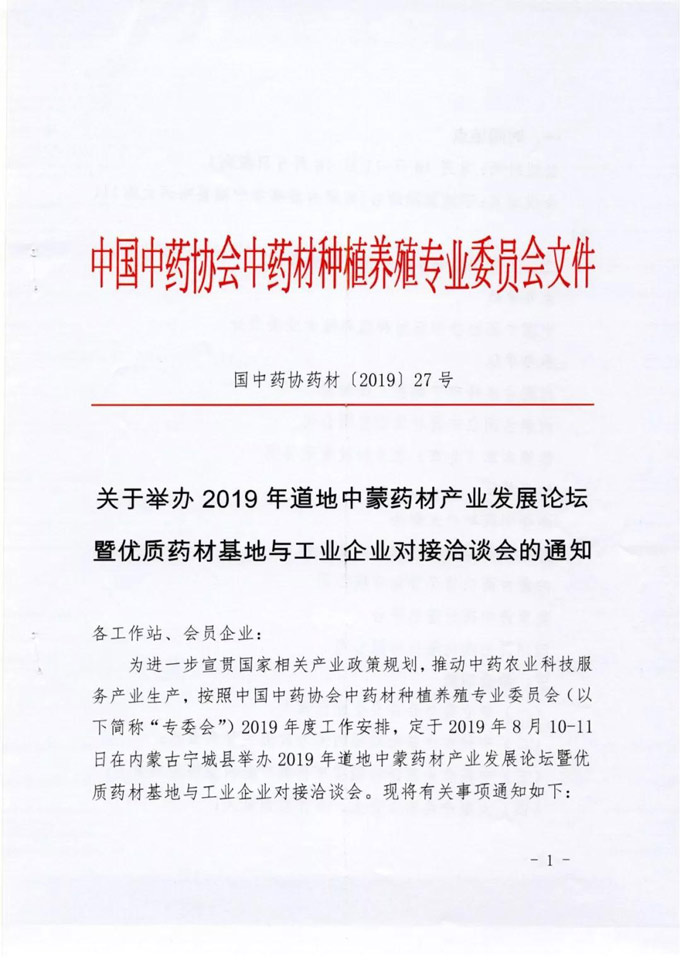关于举办2019年道地中蒙药材产业发展论坛暨优质药材基地与工业企业对接洽谈会的通知