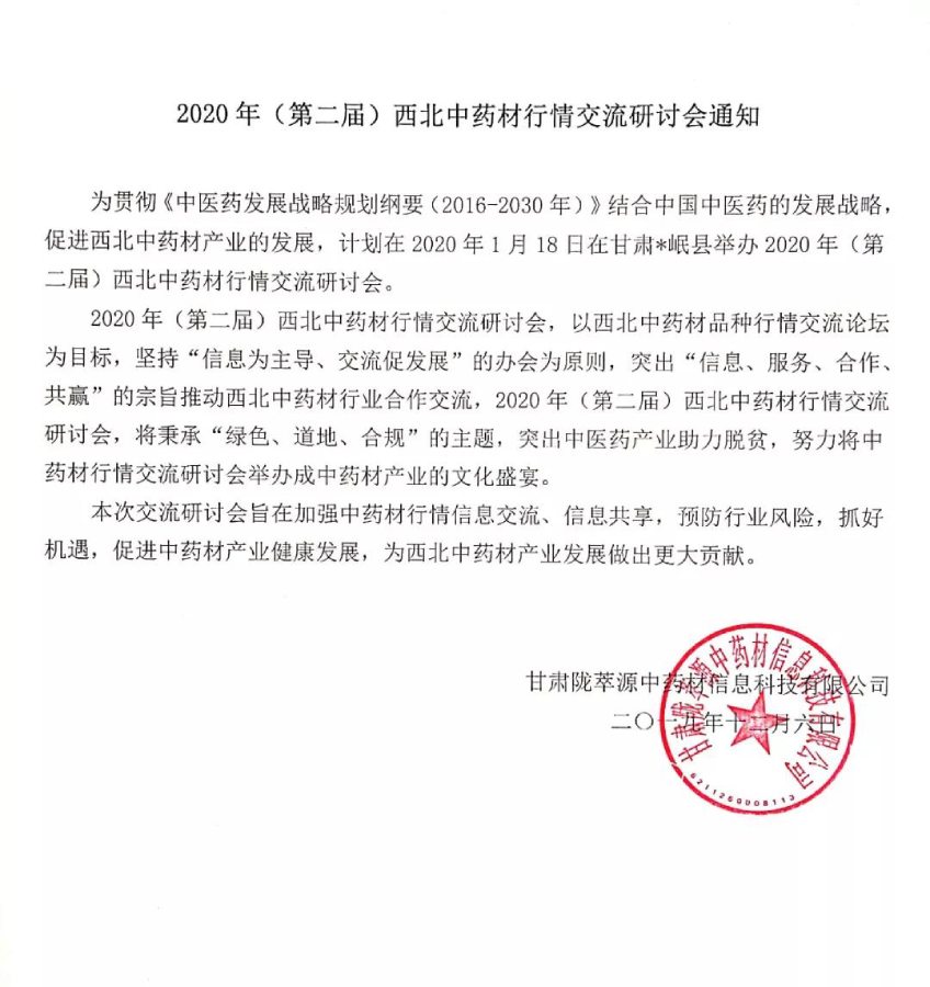 2020年(第二届)西北中药材行情交流研讨会