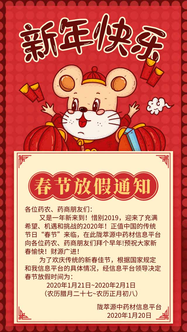 陇萃源-春节放假通知