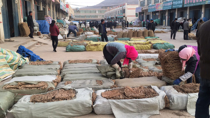 今天渭源市场党参上货量大约在160-180吨左右,人流量稳定,要货的本地药贩和外商都有,但货源走动不快,关望着者多。成交价格较上一集有所稳定。今日成交的货源占上货量的40%左右。药厂货成交价格32-34元/kg;小中条35-38元/kg之间;中条39-43元/kg之间;大中条44-56元/kg之间;大条58-80元/kg之间;特大条80元以上。
