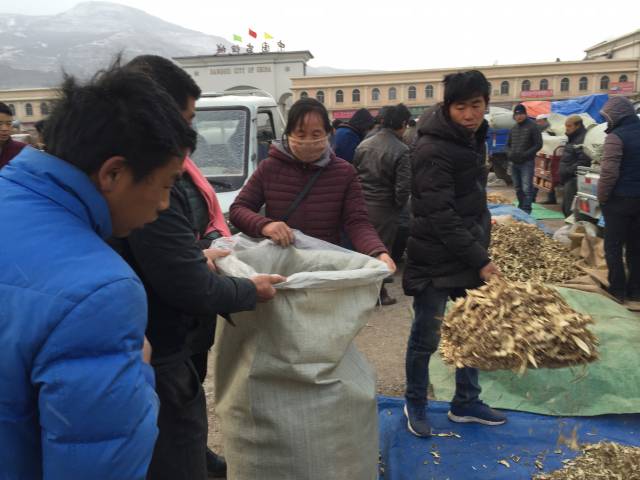 今日天气预报多云,早晨市场飘一定小雪,没有影响到市场的正常交易。今日交易种苗上货量比起昨天有所增加,上货量50车左右,种苗主要以黄芪苗为主,党参苗较少,当归苗尚未在市场出现。黄芪小苗(最小的苗)成交价格在0.8元-1.8元/市斤,中等苗价格在7-9.5元/市斤,党参小苗价格在6-8元/市斤,党参大苗18-25元/市斤。从种苗交易区来看,上货量增加、成交量增加、客流量增加。