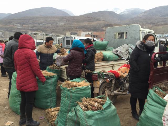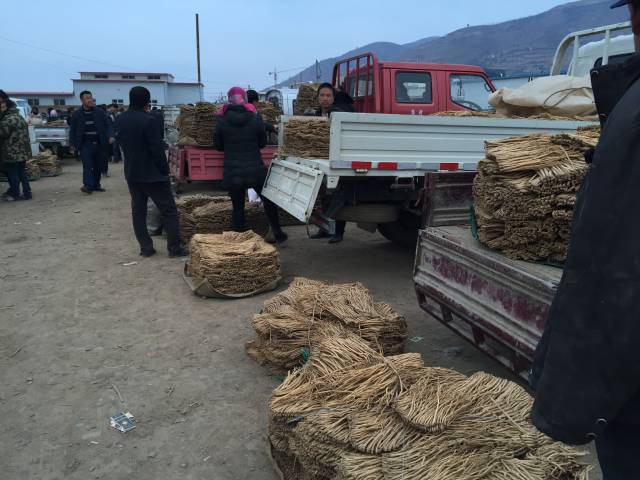 今日交易种苗上货量比起昨天有所增加,上货量80车左右,上货量多、客流量多,岷县种苗交易正式开始。今日种苗交易区主要以黄芪苗为主,党参苗较少,当归苗尚未在市场出现。随着种苗交易的开始,种苗货源陆续增加。黄芪小苗(最小的苗)成交价格在0.8元-1.8元/市斤,中等苗价格在7-9.5元/市斤,党参小苗价格在6-8元/市斤,党参大苗18-25元/市斤。从市场整体货源来看,受去年旱情的影响,黄芪种苗个头小点,但是种苗货源不少。