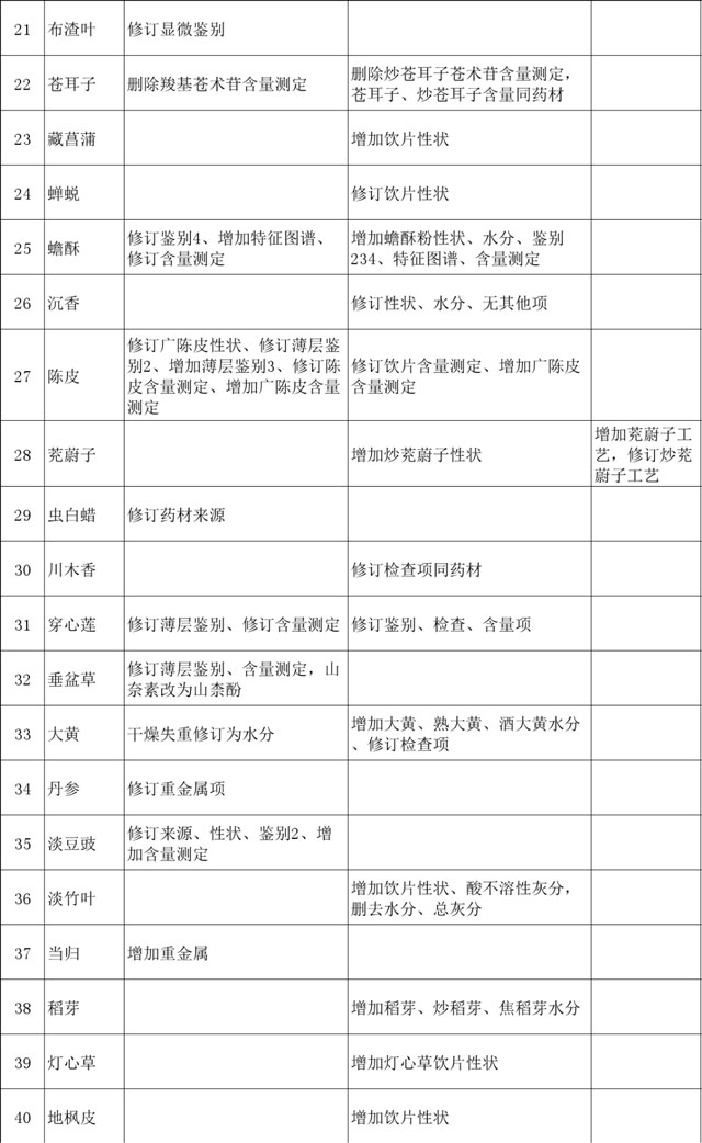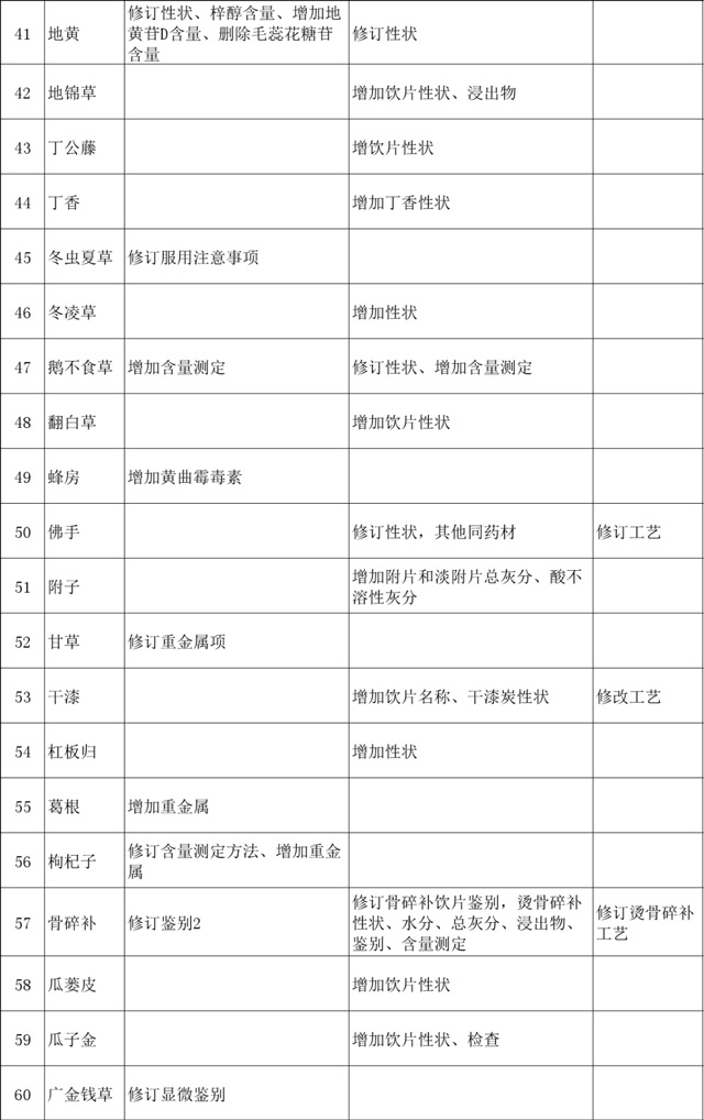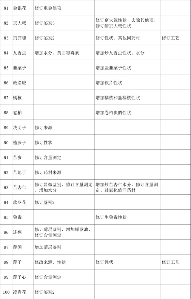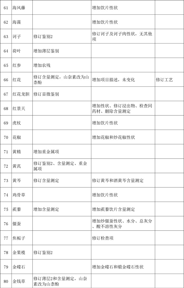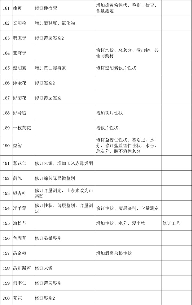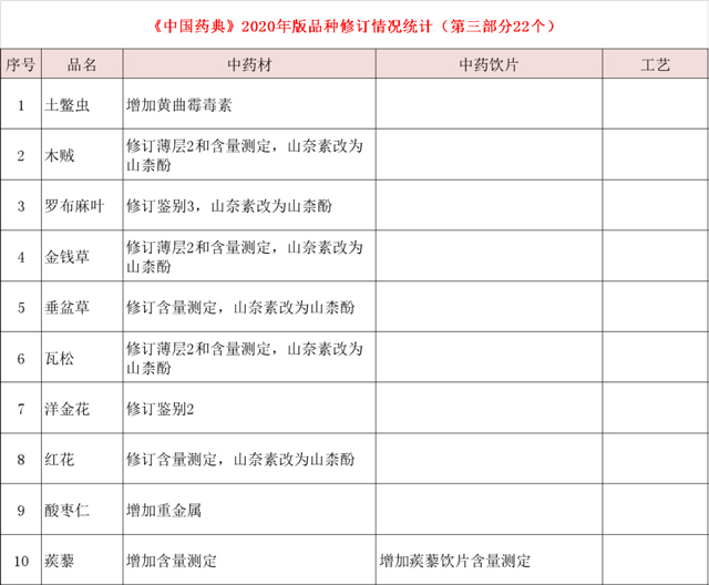 终结版| 2020版《中国药典》中药材及饮片修订项目汇总,共