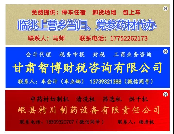 3、中药材供求信息推广,200元/月,一季度600元,一年2000元,现价120元/月,一季度360元/季;1200元/年祝各位朋友身体健康,新年新气象,新的一年暴富鸭!陇萃源一直与您同在。